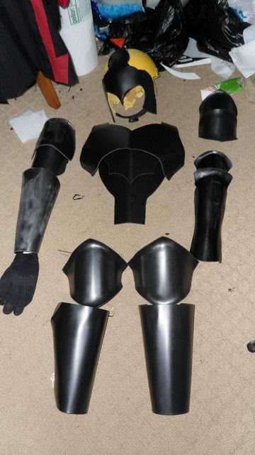 Added the same style of detailing on the forearm armor as well as the clamshell under bracer. The bracer would clamshell by having elastic on both sides of the bracer and having my arm slip into it.
