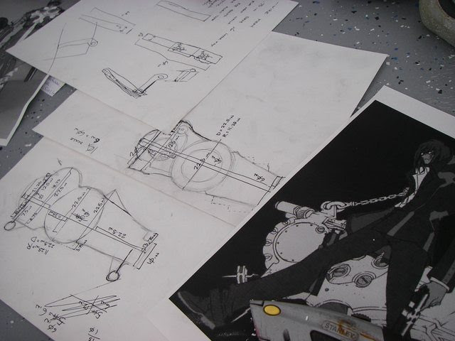 After that was all done I would have to make the sword. The sword stands about 5'5" and I have never made a sword that complex on that grand of a scale. The thing began it's life as a piece of composite board. Really cheap stuff but strong as all get out.